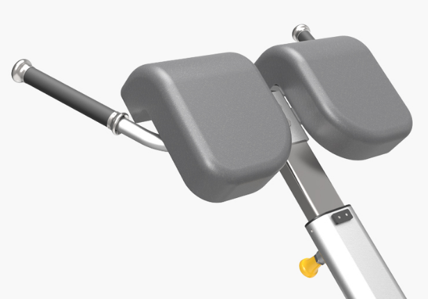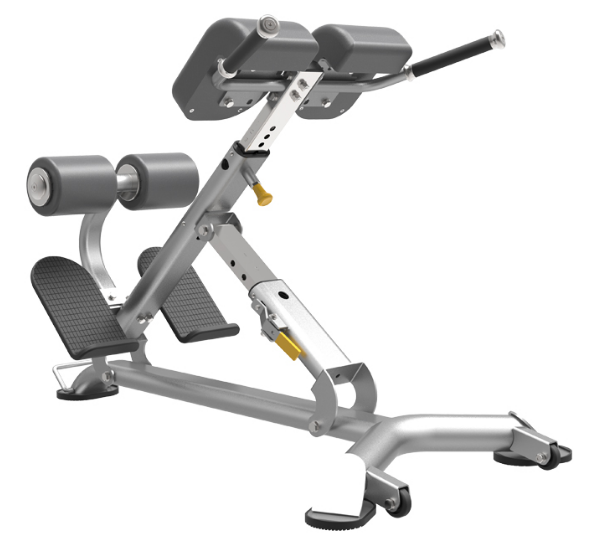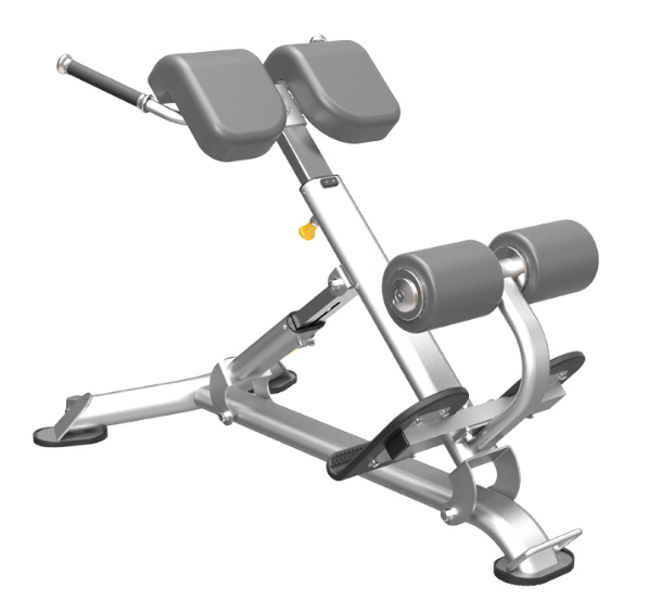 Multi Hyperextension is a training equipment for the core muscles of the lower back, mainly for erector spinae, multifidus, gluteus maximus and hamstrings. The thick L-shaped cushions and rollers provide good support and comfort for the user during exercise.